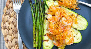 Camarones a la parrilla con kimchi de arce y chipotle